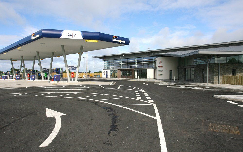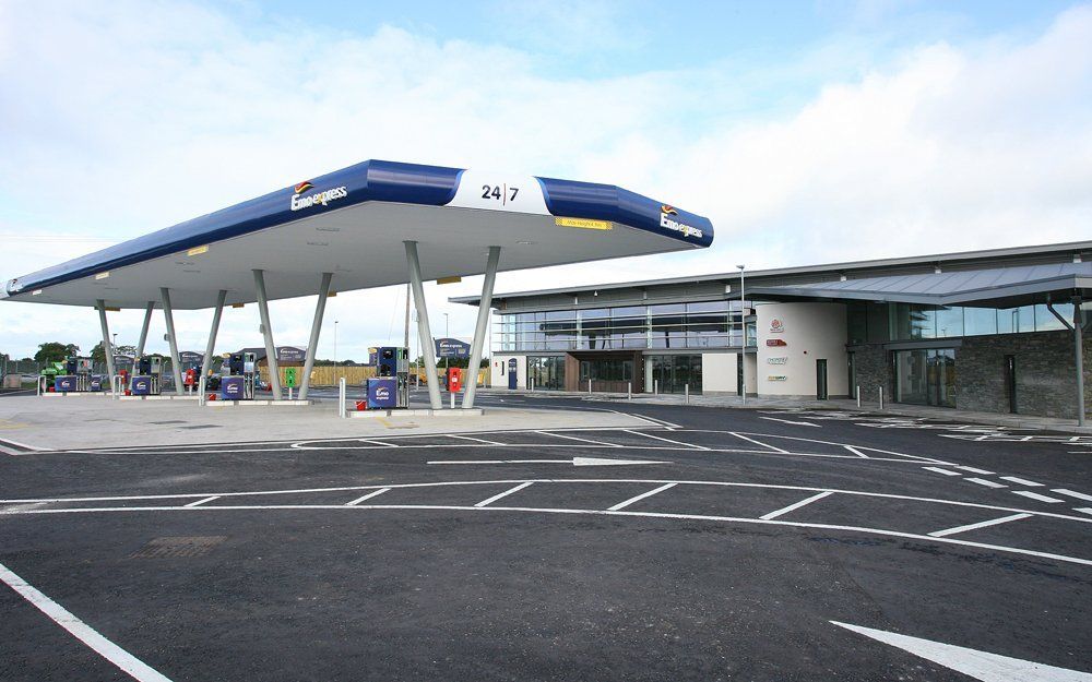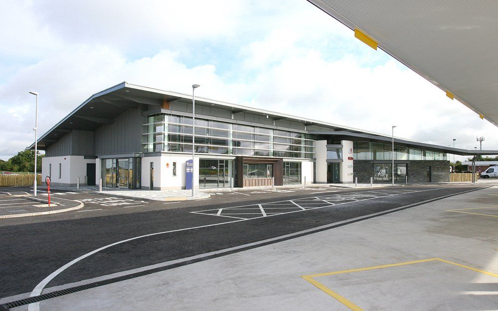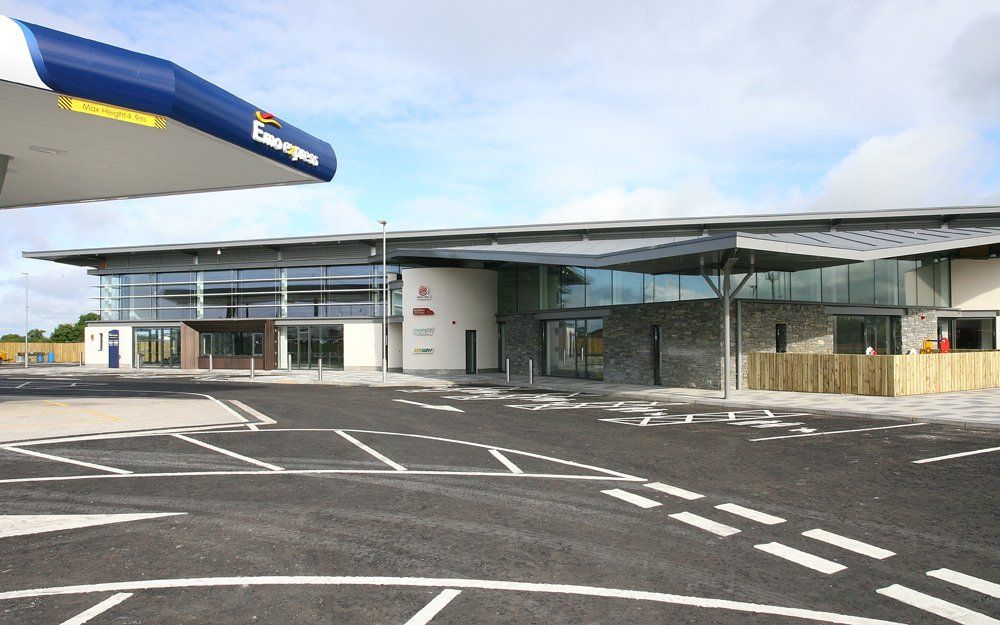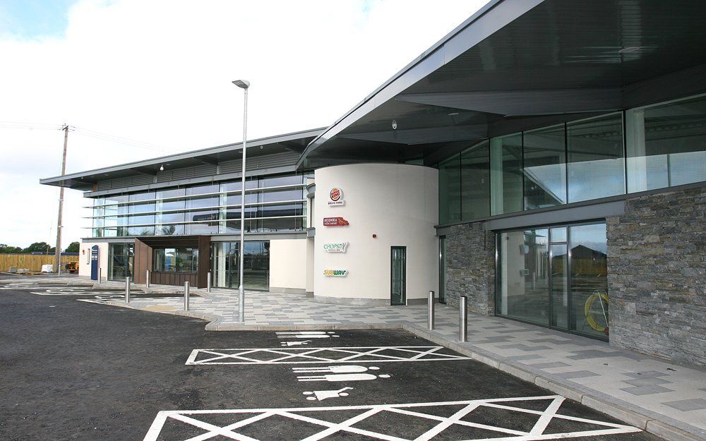 The scope of works involved the construction of a 10,500 ft² steel portal frame forecourt building which includes a retail shop with food hall, sandwich bar, coffee kiosk, hot food bars, children’s play area, ATM, drive through facility and rest and washroom facilities.